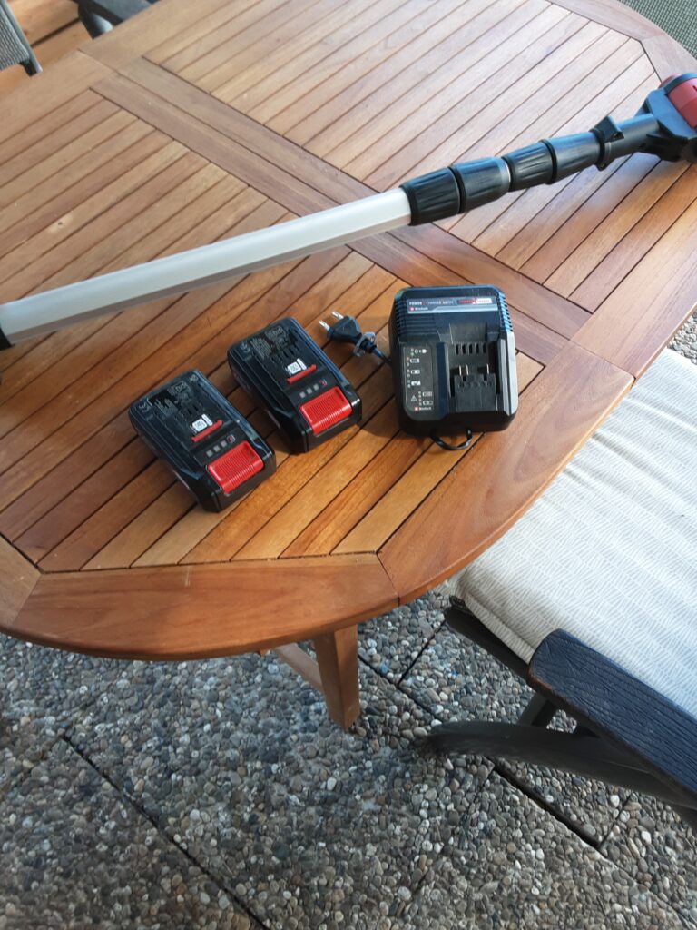 Die Akku Hoch-Heckenschere ist ein sehr leistungsstarkes Gerät, das bei der stromnetzunabhängigen Pflege von Hecken, Sträuchern und Gebüschen auf großen Grundstücken und in Schrebergärten gute Dienste leistet. Dabei sorgt das Metallgetriebe für hohe Langlebigkeit und die aus lasergeschnittenem und diamantgeschliffenem Stahl gefertigten Messer für saubere Schnittresultate. Der stabile Aluminium-Teleskopstiel kann stufenlos auf jede Höhe eingestellt und arretiert werden. Der ebenfalls stufenlos verstellbare Zusatzhandgriff wird mit dem praktischen Schnellverschluss auf den Anwender angepasst. Um auch schwierige Vertikal- und Horizontalschnitte in der Höhe sauber und präzise ausführen zu können, lassen sich der Motorkopf 7-fach und der Hauptgriff 4-fach neigen und somit auf jede Arbeitssituation abstimmen. Im stabilen Köcher lässt sich die Strauchschere sicher und bequem transportieren und verstauen.