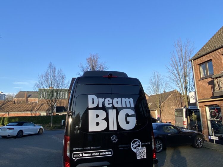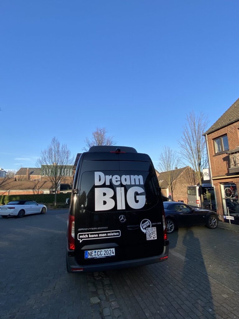 5. **Er sieht einfach super edel und professionell aus!** schwarz mit verdunkelten Scheiben, Aluräder und dezente Folierung verleihen unserem Sprinter den nötigen WOW Effekt, lassen aber auch noch Raum für Eure Teamwerbung z.b. in den Fenstern!